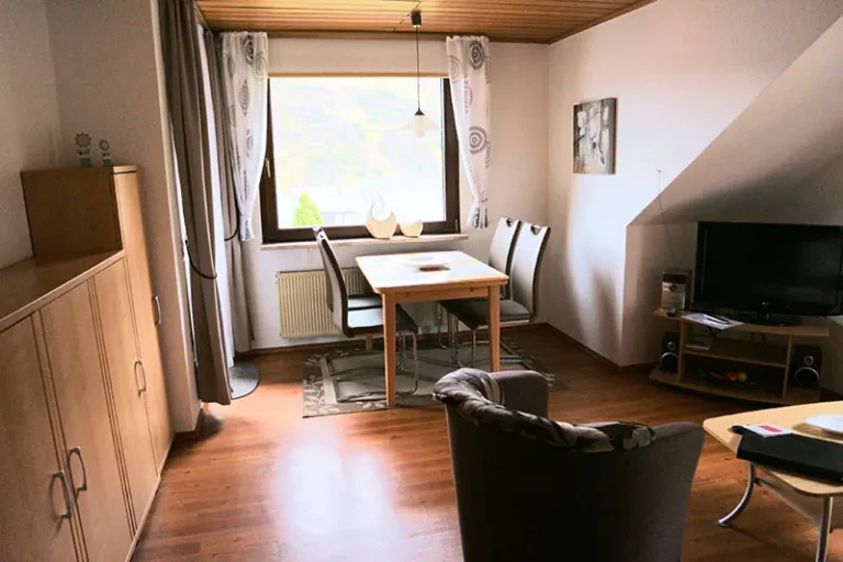 Wohnraum: Die Wohnung verfügt über einen gemütlichen Essbereich, Couch, Flachbild-TV.