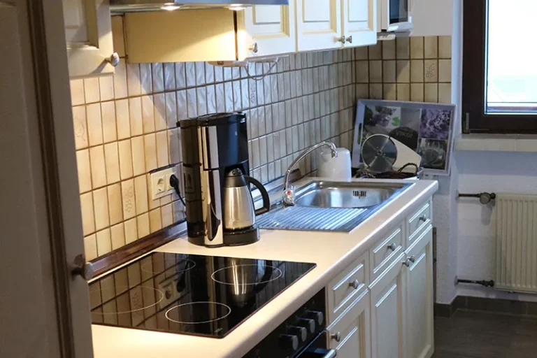 Küche: Voll ausgestattet mit Elektroherd mit Backofen und Ceranfeld, Kühlschrank mit Gefrierfach, Mikrowelle, Kaffeemaschine, Wasserkocher, Toaster und Eierkocher.